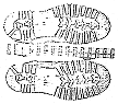 Size 7 boot prints found at scene. Boots could be comfortably worn by persons with a shoe size of up to 8 1/2. Worn right shoe suggests a lorry driver. |