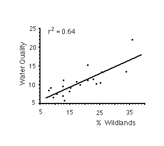 Water quality measurements from 20 sites along three streams were correlated against the proportion of wildlands within 100m of the sampling points as calculated by the GIS model (Figure 2).