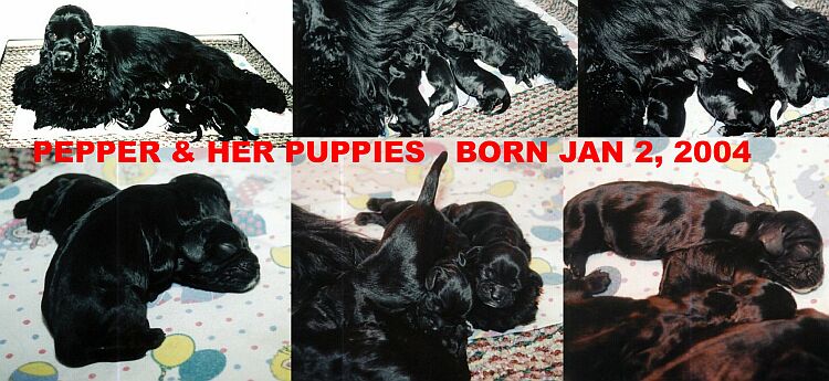 HERE ARE SOME NEW PICTURES OF THE PUPPIES TAKEN ON JAN 10, 2004 AT 1 WEEK OLD. ENJOY THE PICTURES OF THESE BEAUTIFUL YOUNG COCKERS.