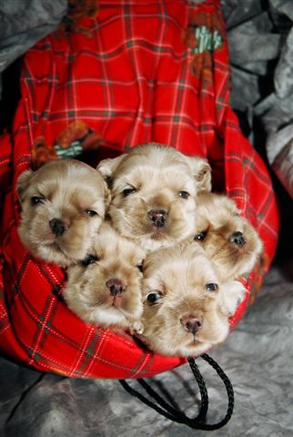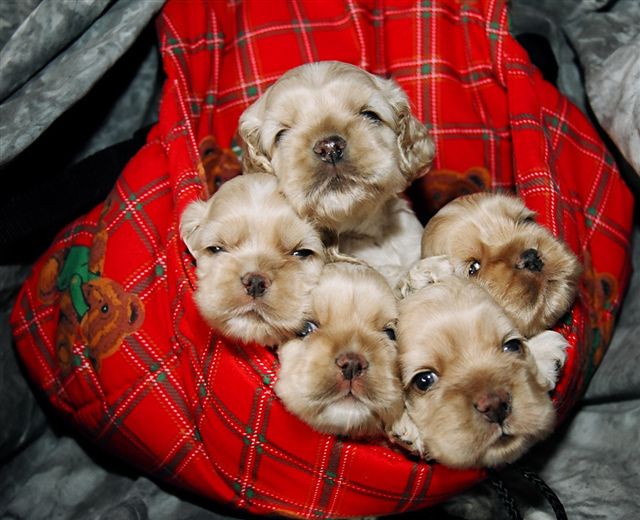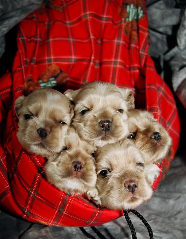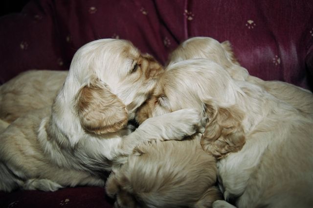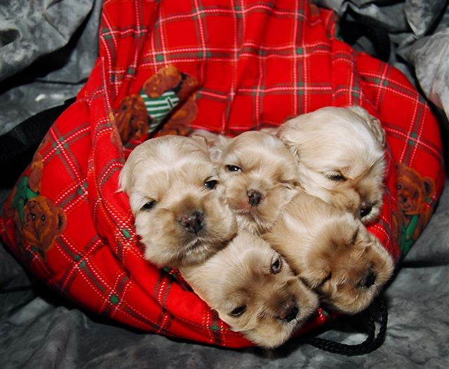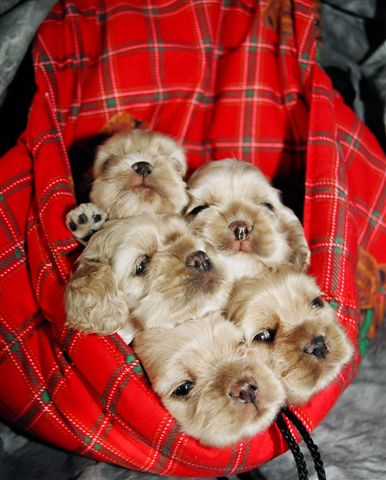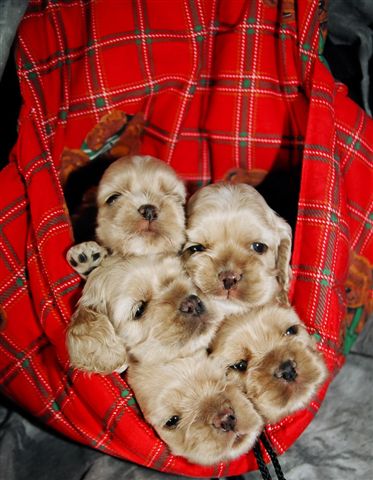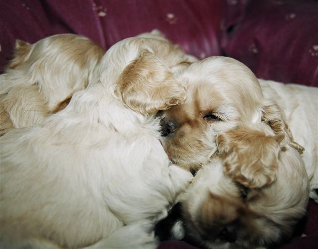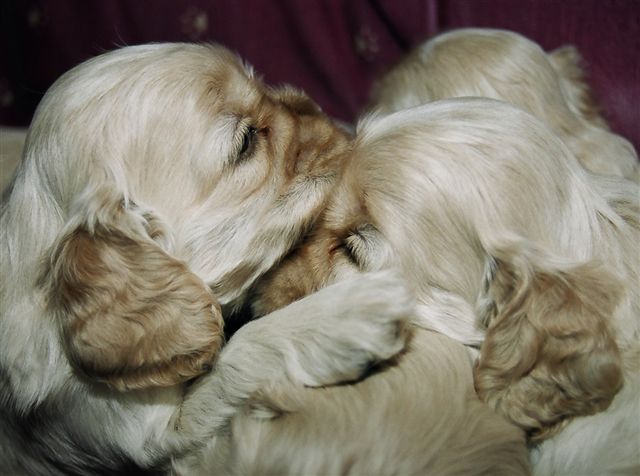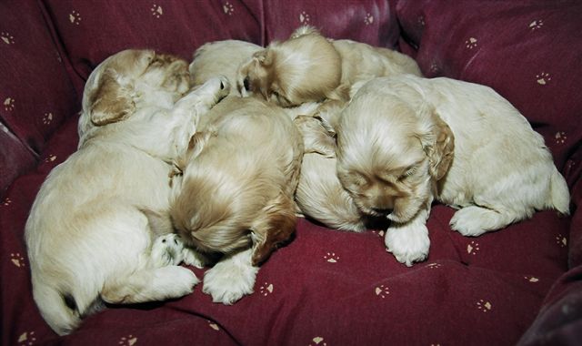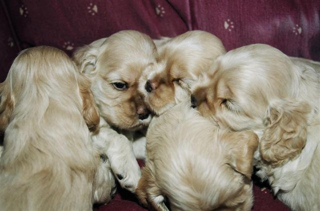 HERE ARE 3 GENERATIONS TOGETHER, GRANDMA "BRANDY", MOM " BETTY COCKER ", AND HER PUPPIES. [ NOTE: BETTY COCKER IS FROM BRANDY'S 2ND LAST LITTER ].......