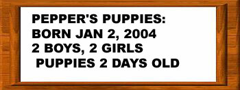 HOPE YOU ENJOY THE PICTURES OF PEPPER'S 2ND LITTER..............ENJOY.....PUPPIES ARE THE BEST...