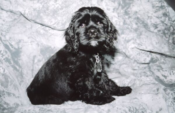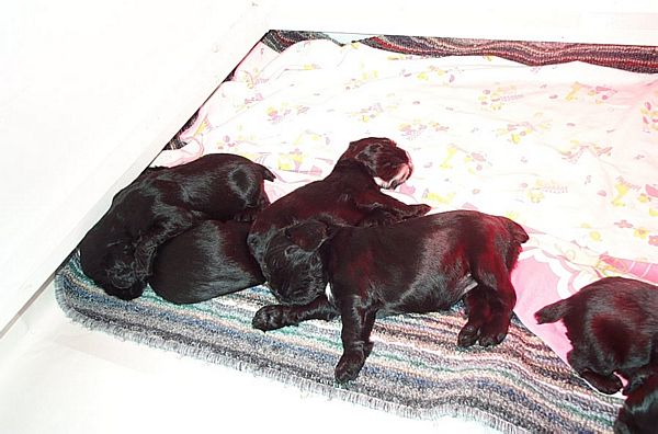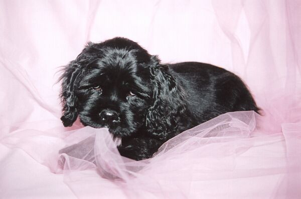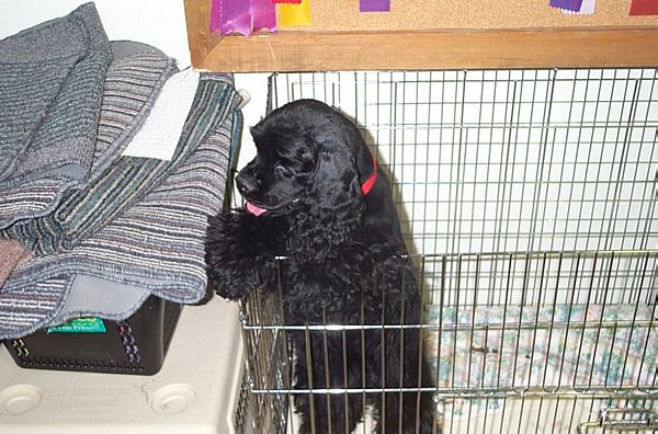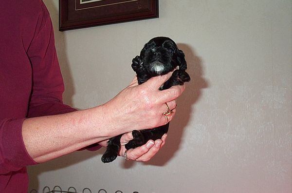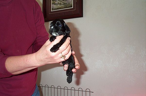 OUR PUPPY " RAVEN " AT 8 WEEKS OLD JUST BEFORE SHE GOES HOME WITH PAM RIACH "