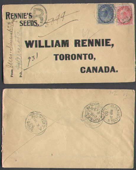 Scan #4680 - 2c + 5c Numerals reg'd - Hamiota , Man - Mr 3 1900 - $35.00 Cdn -